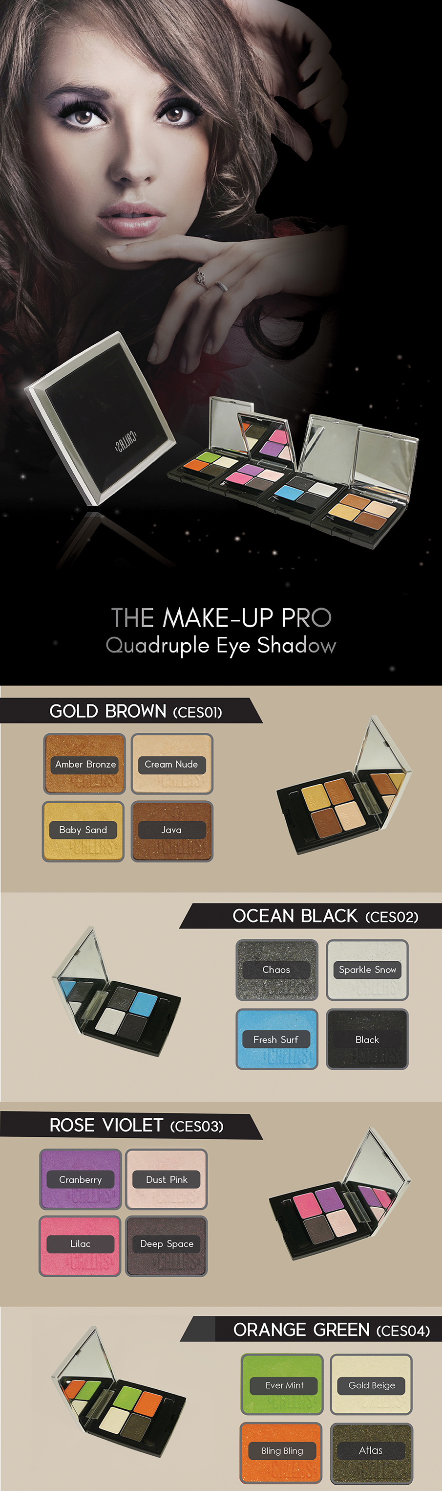 The 4-Colored Eye shadow Palette Composes of trendy colors that are composite and sharp for a highlighter, base, point and liner that presents a 3-Dimensional eye shape look.How To Use