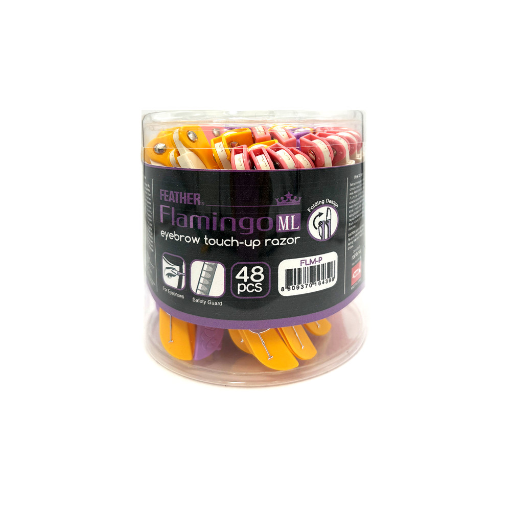 Feather Flamingo ML Facial Touch-Up Razor is the perfect precision touch-up tool for your face. Platinum-hardened Japanese stainless steel provides precision and long-lasting use. The Safety Guard adds an extra measure of protection for your skin. The resin coats the blade to provide a gentle, smooth shave. The Flamingo Folding Design stores ideally for easy travel. Create a clean canvas for cosmetics with Feather Razors. Look your best!