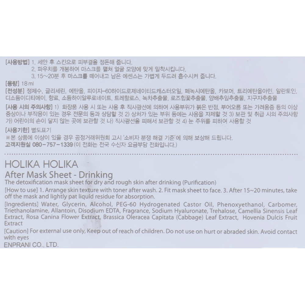 mask sheet that will clean up your skin and make you feel like you do not drink